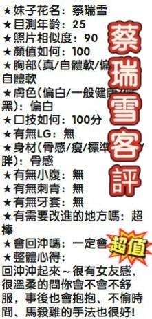 服務特色:甜蜜共浴/按摩/調情/胸推/舌吻/無套吹/水中簫/舔蛋/奶炮/豪邁吃屌/69舔鮑魚
