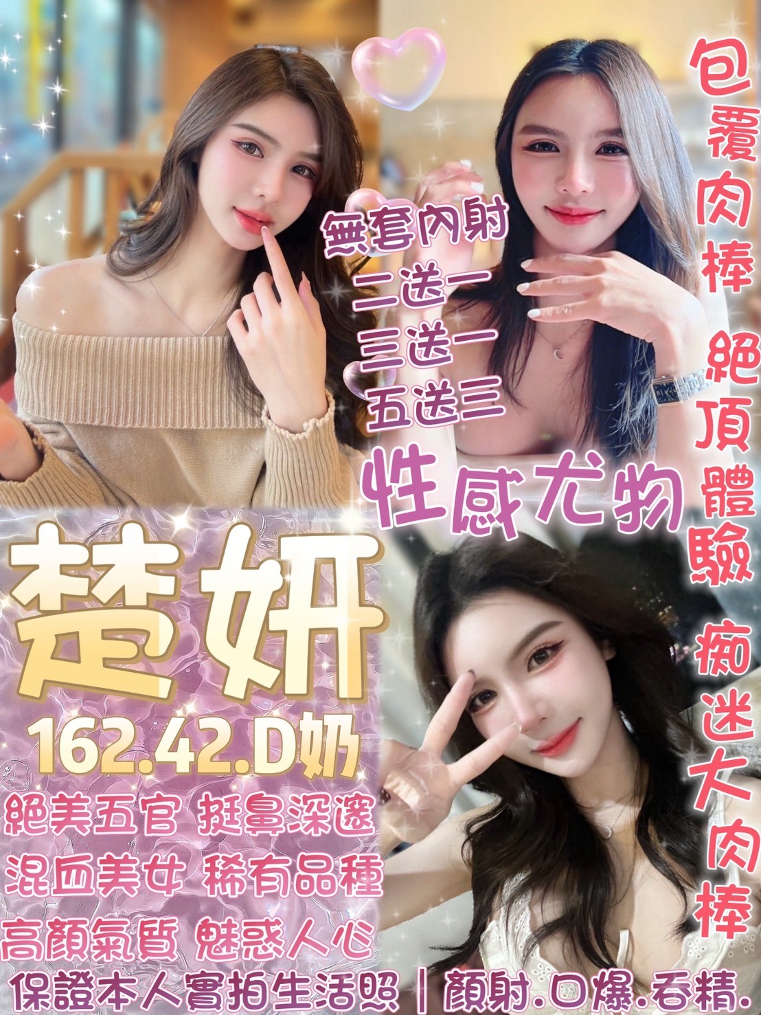 無套吹 共浴 小親親 舌吻視感覺 品鮑 69 深喉嚨 舔蛋 胸磨臉 按摩 奶炮 雙飛 情趣用品(客自備 胸推 屁推 絲襪(客自備 自慰秀