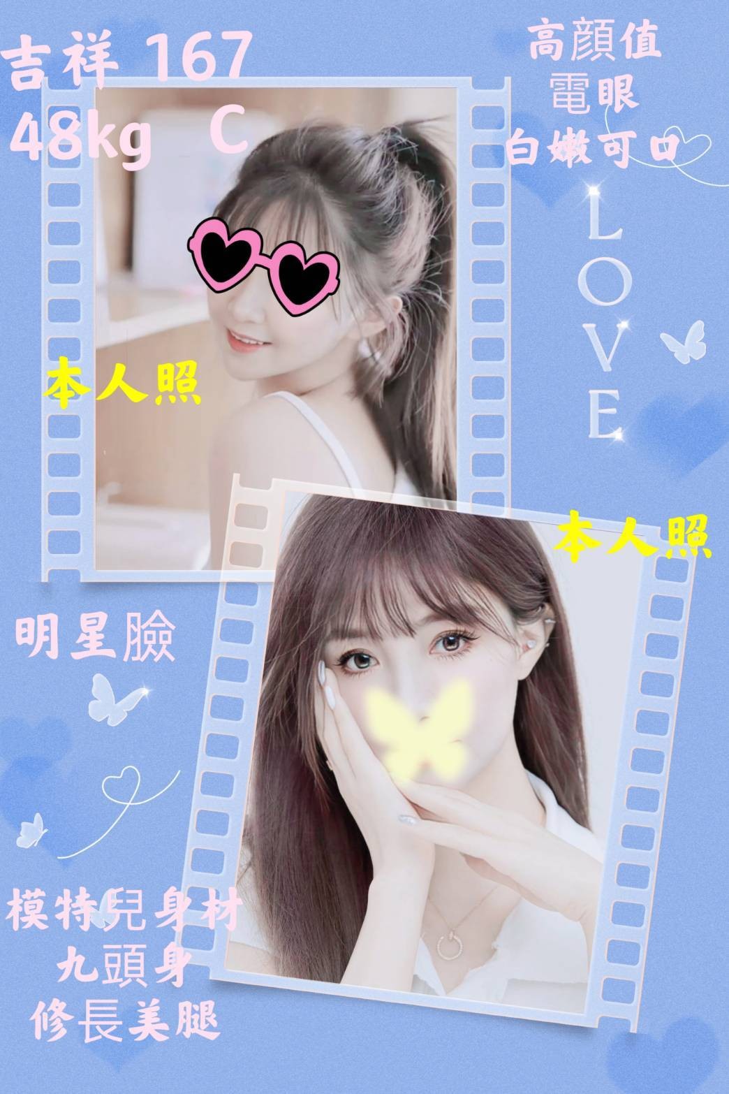 (告白)新吉祥: 初兼   高顏值    迷人電眼    白嫩可口    模特兒身材    九頭身    修長美腿    完美身材比例    人見人愛    可獨龍   口爆+500,69,無膜吹,殘廢澡,2S+500,品鮑,奶炮 ,漫遊   雙飛     無膜做+1000内射   13:00~22:30(告白)可外約