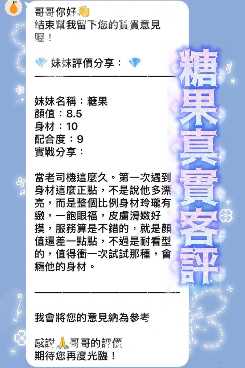 強勢回歸超級搶手,曾經締造客人連包3天3夜佳績,真實巨乳 ,顏值堪比線上遊戲女主,服務沒話說 ,個個都說讚👍,用過都上癮、絕對無法忘掉他的魅力溫柔,不用我多說~
