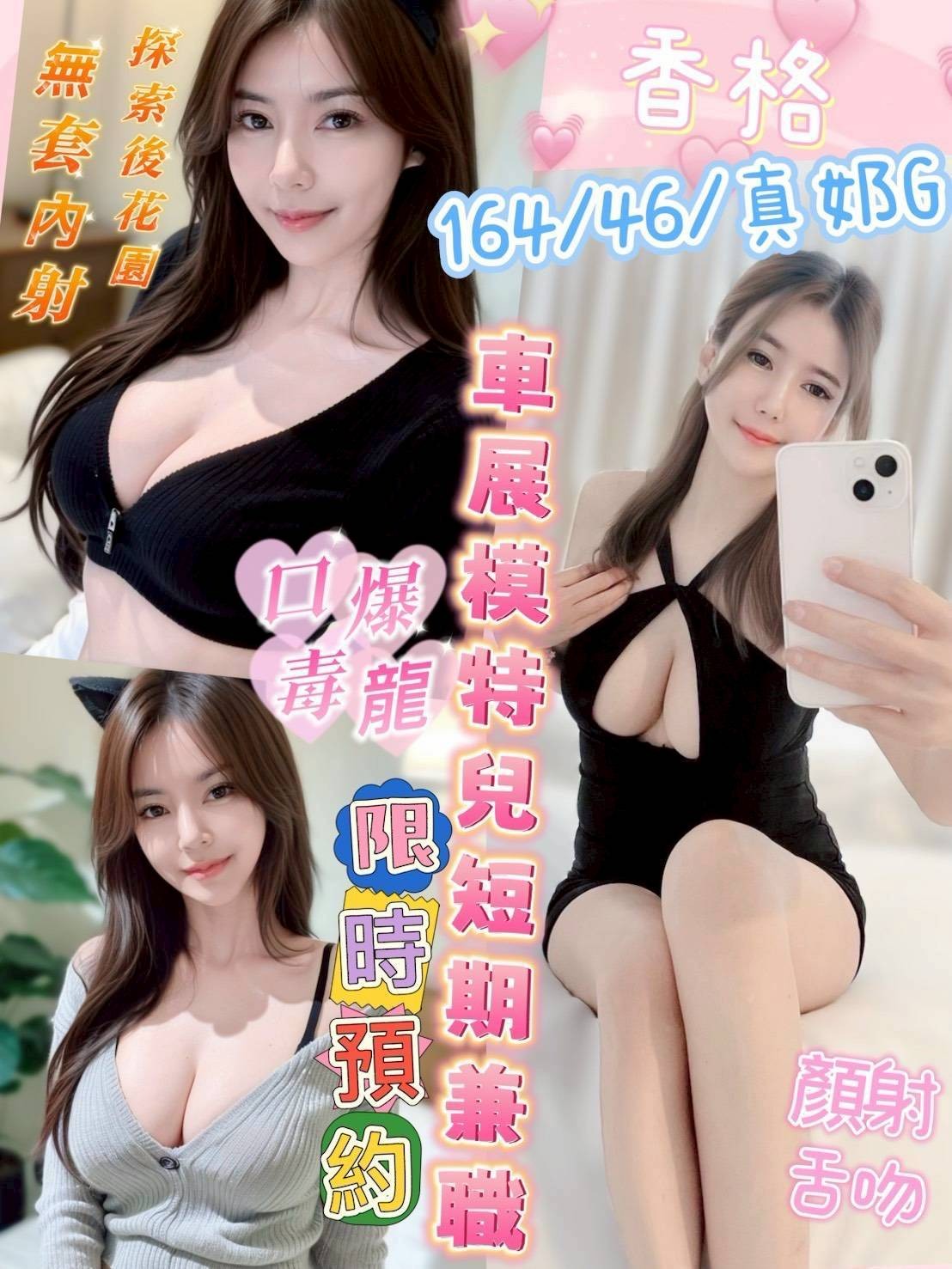 中文溝通、無套吹、鴛鴦戲水、舌吻、親親、品鮑、69、 按摩、奶炮、奶推、屁推、舔蛋、穿絲襪(需自備)、角色扮演(需自備)